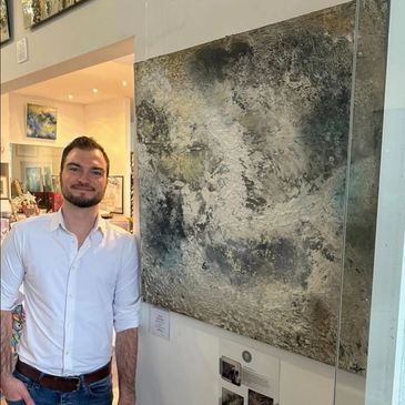 Through the use of sand, plaster and a varity of different paint mediums, James produces multi-faceted pieces that express a unique depiction of